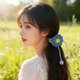 这款 手钩织蓝色小花发饰