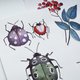 3 件套原创水彩画现代绘画花鸟虫 21x15 厘米