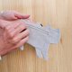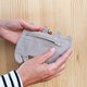 这款零钱包采用 100% 亚麻布手工制作,背面以拉链开合。