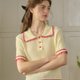 黄色彼得潘领甜美可爱针织常规上衣