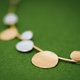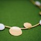 这条项链的主要部分由十片线植物“叶子”组成。本产品具有两个肘节式扣孔,使用灵活,可以靠近颈部佩戴或稍长。所有作品最初都是为这条项链设计的。