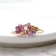粉红碧玺金属丝戒指,饰有石榴石和紫水晶。