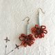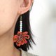 - 融合钩织的柔和及黄铜的跳脱 成了垂钓耳环的设计概念 日: 选用了渐层颜色的橙红色系幼线 夜: 以带闪亮效果的黑色幼线作花
