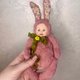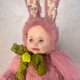 这款可爱的泰迪娃娃将是一份独特的生日礼物。 她坐着时的身高是20厘米,“站着”时的身高是26厘米。 她有着小兔子的身材和小婴儿的脸。 她的手和腿可以动。 她是由聚合物黏土和人造毛皮制成的。她充满了锯末和玻璃颗粒。