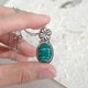 Dark mint green Amazonite cabochon on a clover cut-back blackened sterling silver, with another clover embellishment set on top. Wear this necklace every day, because you can never have enough luck! 🍀🍀