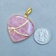 这款手工制作的项链/吊坠灵感源自日本古老的金继哲学——用黄金修复破碎之物的艺术。天然宝石经纯金箔修复,镶嵌于22K镀金纯银底座。每件作品皆象征着韧性、蜕变与不完美之美。(每颗心形玫瑰石英皆为独一无二的天然裂纹与金修痕迹。发货前可应要求提供实物照片)