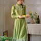 颜色:绿色 领口:立领 细节:刺绣 版型:常规版型 面料:无弹力 成分:100% 棉 保养说明: 1. 正常洗涤 2. 浅色衣物和深色衣物请分开洗涤,避免长时间浸泡。