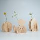 组装完成的花瓶,宛如一件小巧的雕塑品。五片木块在空间中交错,随着观看角度的不同,呈现出多变的立体表情。透过转动欣赏,更能从 360 度全方位感受花与花器交织出的形体之美。