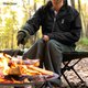 篝火友善 黑色素面由高度阻燃的改性腈纶面料制成,因此可以在篝火旁穿着。(※即使点燃,火势也不会蔓延,但如果火花或其他颗粒落在织物上,织物的部分可能会融化!)