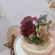 使用花材:玫瑰永生花1朵、金色木玫瑰1朵、不凋雪松、松果、果实类,依季节选用适合干燥花材来搭配
