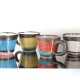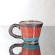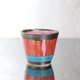 胴体にはオレンジ色の釉とターコイズブルーの釉を掛けわけ模様を描いきました。