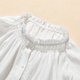 领口采用荷叶边与褶皱的组合,巧妙地提升脸部周围的视觉效果,袖口的荷叶边与褶皱设计则为手部增添了一抹精致感。