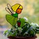 Decorative ornament for a plant pot. Flower fairy with berry. This is a real stained glass window. The face is applied with paints and fixed by firing. Those. the paint will not wash off and is not afraid of water. "Legs" made of copper wire 13 cm. Carefully insert into the flower pot so as not to damage the roots of the plant.
