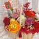 花材:永生玫瑰、索拉花、尤加利叶、永生绣球、兔尾草、钮扣果实