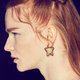 It's a detailed earring that surrounds Snowball, which is designed with the motif of the sky travel collection star. The design features a crescent moon surrounding a glass snowball that looks like it's floating in the middle of a star.