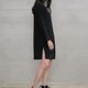 笔直俐落的双头拉链洋装,可做为单穿洋装或是罩衫外套,织纹细致的深色面料,包裹着低调深层的内敛灵魂。领边、袖口、下摆拼接罗纹面料,增添几分随兴率性;侧边开衩让腿部曲线有着若隐若现的透视感及增添活动度,巧妙的减少厚重感受。率性自我的魅力不迳而走。