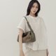 慵懒格调廓型结构真皮手提肩斜背包 橄榄绿