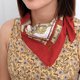 每个法国女生的衣柜内至少有一条像这样的经典款丝巾,用来随意配搭各种衣服。这条酒红色复古围巾于意大利制造,酒红色的背景配上绿黄相间的链条图案,优雅而精致,可以用作围巾,头巾或绑在手袋上作装饰。材质为100%聚酯纤维,看上去跟丝质没有太大分别,但好处是可以放进洗衣机清洗及使用熨斗。
