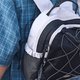 半圆造型轻巧好用,双拉链袋口,可容纳10.5寸ipad。增加做工扎实的塑胶手提,收纳功能做的特别出色,正面穿绳元素,夜行反光,更具城市出行功能感。侧身有弹力网布袋口雨伞水壶等杂物均可放置。