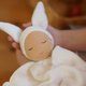 The handmade bunny doll will become a fast friend to your child and will be a perfect accompaniment to your little one’s adorable room.