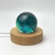 这颗萤石球拥有极为罕见的深海蓝绿与墨绿底色,在光线下,层次分明的蓝萤石与绿萤石交织。转动球体时,内部的千层方块体与细羽毛纹理清晰可见,仿佛将整座深海的波动与星辰收纳其中。