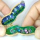 这是一件真实花生壳内的动态微缩模型。我打造了微小的电路,透过手动齿轮与磁石,让蓝色、粉红色与绿色三辆小车实际移动。
