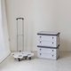 收合>按底层灰色按钮,拉杆与底板呈一直线(轮子平整收合),再按下上方压钮收拉杆
