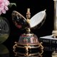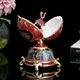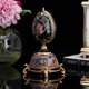 💕彩蛋上的金饰是22k手绘金彩,彩蛋上镶有90多颗人造宝石,此款俄罗斯皇室彩蛋,蛋壳需要手打开,人物是不会旋转的,旋转旋钮后放手音乐就会响起,无连带动作,音乐铃的发声原理是手转动旋钮带动旋转弹簧,再带动一个转轴,转轴上有上百枝的小棍子,棍子会在适当的时间敲击18片长短不一的簧片并发出美妙的音乐铃声。💕