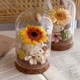 这款玻璃罩桌花选用永生小雏菊为主花,
