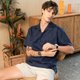 Solstice's Weekday adjustable shorts collection, linen men's adjustable waist with side adjuster and step buttons trousers. - Natural linen Color