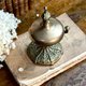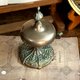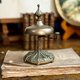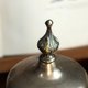 如艺术品般的古董桌铃,铸造底座上刻有复杂且生动的莨苕叶纹等古典植物图腾,顶部饰有尖顶装饰。功能完好,轻轻弹压边锤,即发出清脆悦耳、余音绕梁。在 19 世纪的欧洲贵族家庭、高档餐厅或酒店,它通常放置在餐桌旁、书桌上或接待柜台,用于呼唤仆人、服务员或引起注意。它代表了当时优雅的生活仪式和服务文化。现今依然实用的桌铃,也是一件小型的雕塑艺术品。