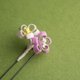 透过丝线以缠绕铁丝与纸片,之后再形塑出花卉造型。