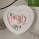 相框 手工制作的浅粉色爱心相框,配有粉色玫瑰和白色装饰。