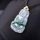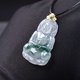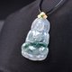 【名称】冰种飘蓝花翡翠观音菩萨项链 18K 金