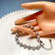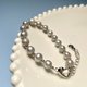 7-8mm近圆的天然淡水珍珠呈现出美好的银灰色,在淡水珍珠里面是比较稀有的。纱织小姐为其以 S925银隔珠搭配,用心形搭扣连接,长度约17-18cm,在腕间垂下约4.5 cm的延长链,佩戴舒适,精致感立现。
