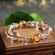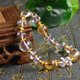 材质选用高透明度近净体水晶,在光线折射下散发出温润的玻璃光泽。黄水晶圆珠同纯银镀金花托与纯银镀金算盘珠配件形成色彩过渡。黄水晶晶体内部仅存微量冰裂与棉絮,既保留天然印记又不失纯净度。通过巧妙的材质组合与金属配件烘托,营造出清透与贵气兼具的佩戴效果。