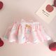 设计:披肩(Cape)款式,缀有蝴蝶结和金色铃铛,打造出简约却细节丰富的小淑女造型。