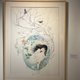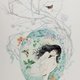 《梦鸣》 媒材: 水彩 创作年份: 2024 尺寸: 76×56 cm(全开) 女孩蜷缩在蓝色蛋壳般的巢中,身体沉浮于艾草的怀抱间。她是月光之女,温柔守护着每一个梦中穿行的灵魂。飞扬的蛾像集体浅意识般的聚拢,艾草像静默的潮汐,在她意识深处轻轻摆动,幻化为语言与影像,层层攀爬,仿佛通向未知的意识巅峰。当她回到清醒时,艾草成为支撑的扶手,护送她回到现实,却带回梦中余韵,让她仍能触摸到那一丝幽微的梦之纹理。