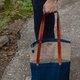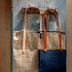 结合了天然棉/麻手拈线手织布的丰富表情、植物染工艺、葛藤网袋编织、