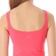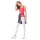 宽肩带曲线造型,搭配网布剪接效果,形成不对称造型。