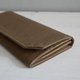考量到水洗牛皮纸具有弹性,长夹之卡片夹层皆制作的较刚好,初期使用放卡片时会比较紧不易放置,使用一段时间后因水洗牛皮纸之延展性,会让夹层空间变松更好拿取 。