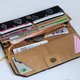 考量到水洗牛皮纸具有弹性,长夹之卡片夹层皆制作的较刚好,初期使用放卡片时会比较紧不易放置,使用一段时间后因水洗牛皮纸之延展性,会让夹层空间变松更好拿取 。