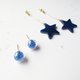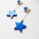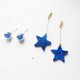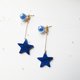 - 宝蓝色星星树脂片配深蓝色水晶玻璃球耳环 可换耳夹式