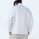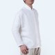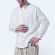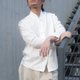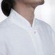 立领衫的剪接与裁片的是西式高级订制衣的做法,整体的也会给人比较正式高雅的质感,设计师在领片形状加入适当弧度而有了东方味,中间开襟采用衬衫的扣子穿脱,外观以直线门襟修饰,只留第一颗与最后一颗扣子外露更显内敛品味。