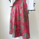 复古裙子,红,花卉图案,苎麻布料,尺寸 S,腰围 26