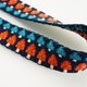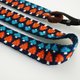 在中南美旅行时深深被织品工艺吸引因而开始学习织带创作,以传统织布原理技法织成,一个小单一图形利用织法变化就能在一长条织带上连续产生几种型态,古老工艺千变万化,图案皆为本人亲自设计制作。