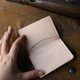 ◇經由日本職人的手工作業,一邊在牛皮上壓印英文字母,一邊通過染色呈現出復古感的皮革。