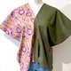 正面或背面皆可当正面着用,撞色配色、日式打褶下摆、日式浪漫花团图腾