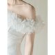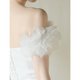 以轻盈透明的网纱一朵朵制作出花瓣形状,如同披上花束般,打造出浪漫且梦幻的视觉感。