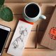 素衣手执本。是笔记本也是便条纸。